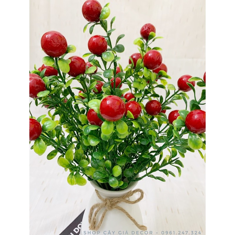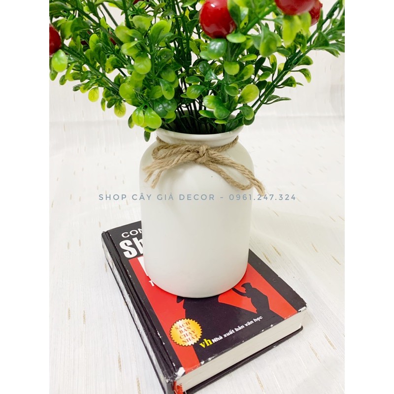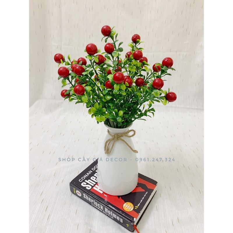 combo lọ hoa + 2 cụm sơ ri đỏ siêu đẹp
