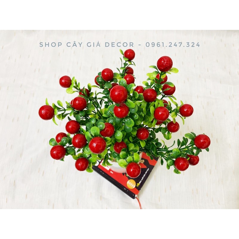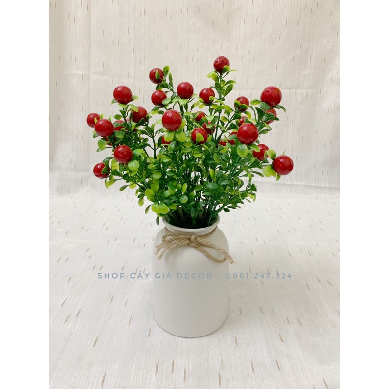 sản phẩm gồm 1 chậu nhựa giả sứ + 2 cụm hoa sơ ri đỏ như hìnhkết hợp với nhau siêu xinh ạ.