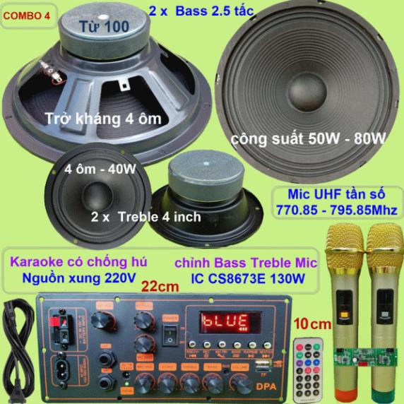 - Công suất mỗi Bass: 50W - 80W trở kháng 4 ôm.
