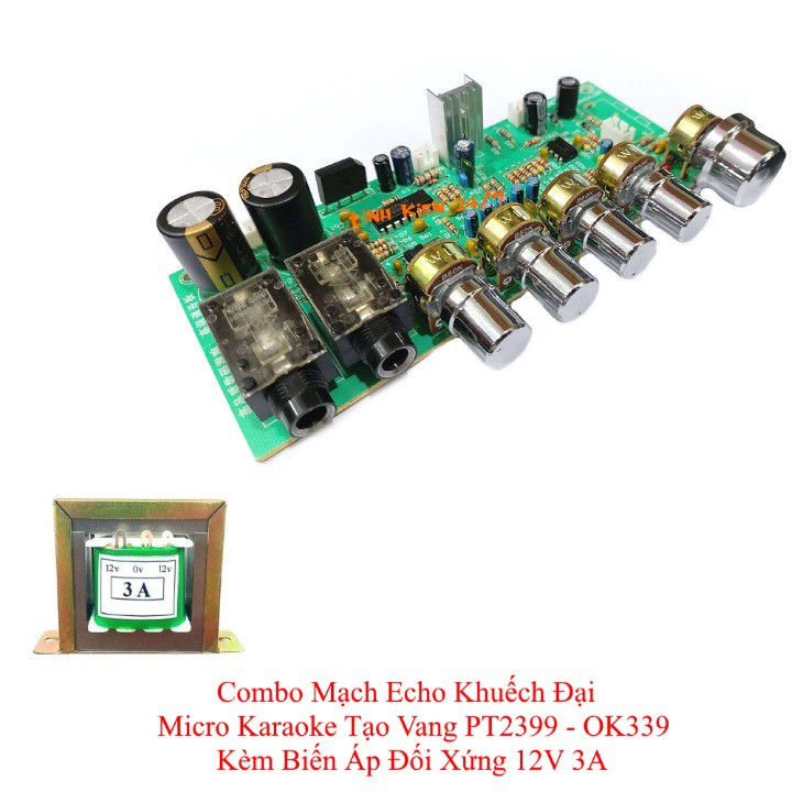Tính năng sản phẩm:- Combo mạch echo khuếch đại micro karaoke tạo vang PT2399 - OK339 kèm biến áp đối xứng 12V 3A là mạch khuếch đại tín hiệu âm thanh và echo karaoke với công nghệ trộn âm thanh hai chiều có thể điều chỉnh được âm lượng nhạc, âm lượng micro, echo bằng chiết áp trên mạch.