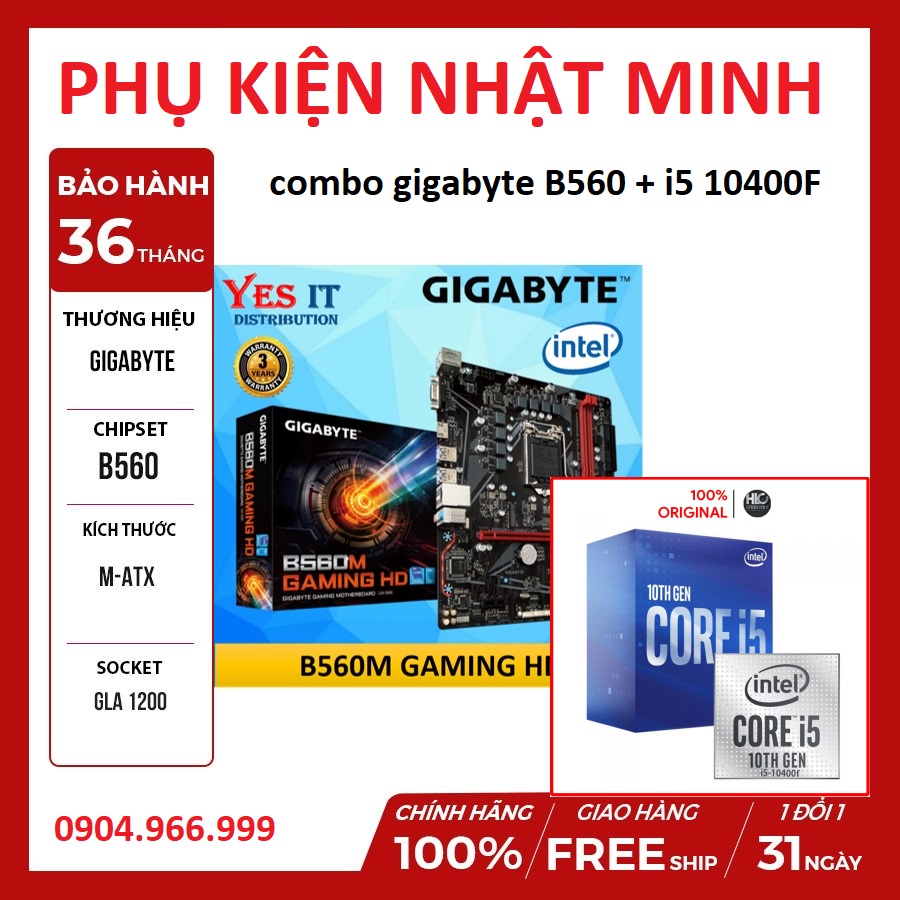 Giới thiệu Combo Main gigabyte B560M gaming HD + i5 10400F Full box chính hãng bảo hành 36 tháng lỗi đổi mới