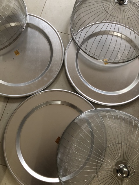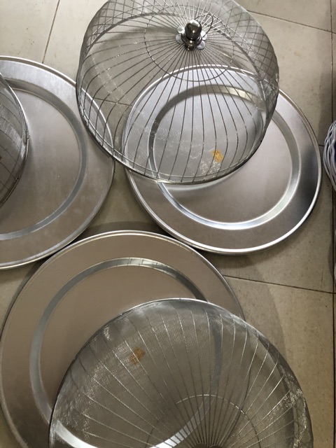 Combo Mâm nhôm và lồng bàn inox che đựng đồ ăn dày
