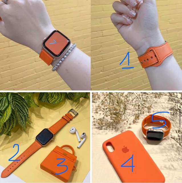 Combo màu cam cực hot, ốp lưng dành cho iPhone và dây đeo Apple watch