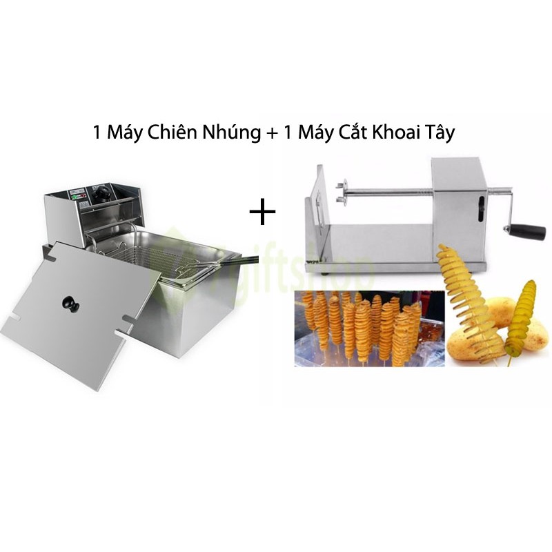 Combo Máy Chiên Rán Bằng Điện + Máy Cắt Khoai Tây