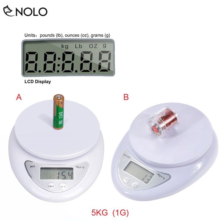 Cân nhà bếp sử dụng pin tiểu AAA 2 viên, shop có tặng kèm. Cân có thể cân tối đa 5kg và nhỏ nhất là 50gr, với sai số xấp xỉ 3gr.