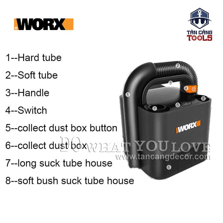 Giới thiệu Combo Máy Hút Bụi Mini Worx WX030.9 20V 2Ampe
