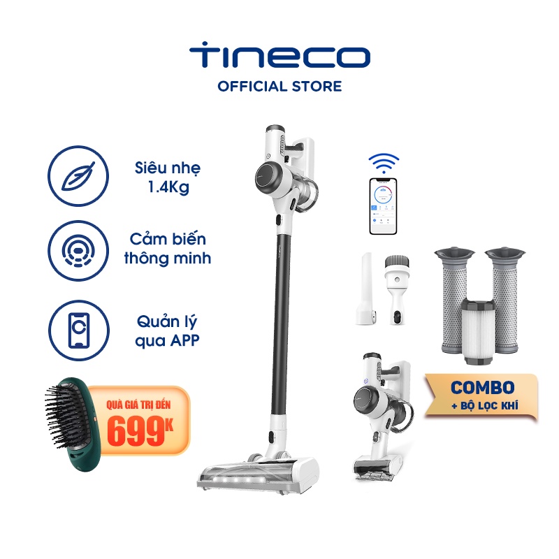 Combo máy hút bụi thông minh Tineco Pure One X + Bộ lọc khí - (Chính hãng từ Tineco Việt Nam)Tặng lược I-on Smate trị giá 699k từ 1-31.3