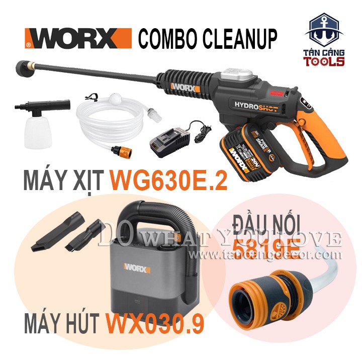 Combo Máy Hút Worx WX030.9 Và Máy Xịt Dùng Pin WG630E.5 Tặng Kèm Đầu Nối