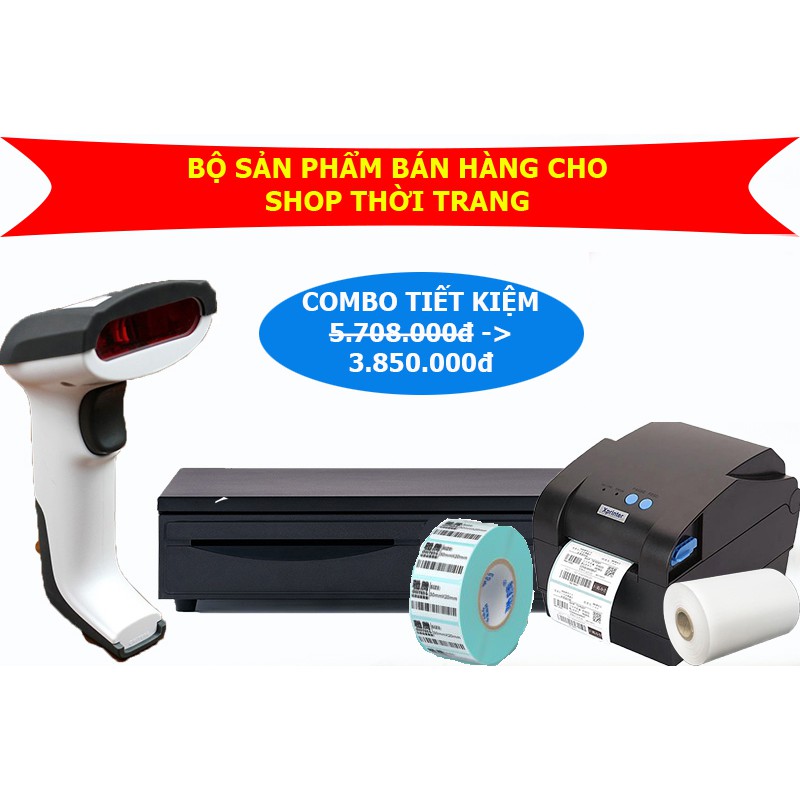 Combo[ Máy in hóa đơn + Máy quét mã vạch + Ngăn kéo để tiền] Bộ sản phẩm hỗ trợ bán hàng cho shop thời trang giá ưu đãi