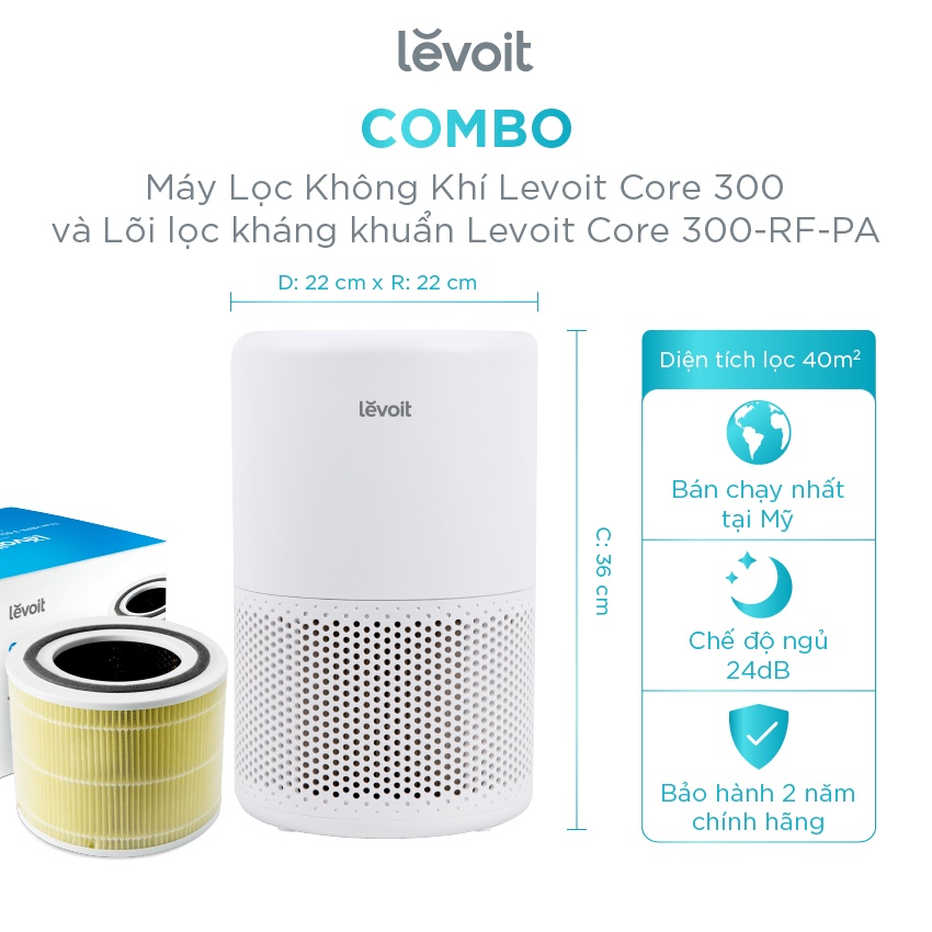 COMBO Máy Lọc Không Khí Levoit Core 300 40m2 và Lõi lọc không khí Levoit 300-RF-PA, LV Core 300, LV Core P350, LV Core 3