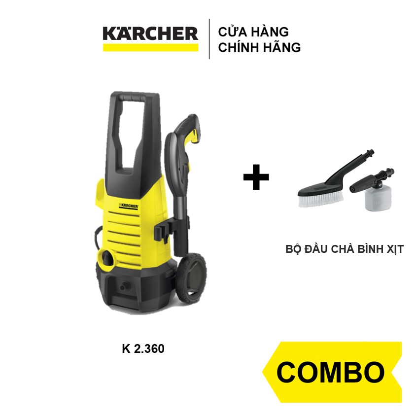 Nhà cửa & Đời sống > Dụng cụ & Thiết bị tiện ích > Dụng cụ > Máy rửa áp lực nước || [Mã LIFEMALL253 giảm 100K đơn 250K] Combo máy phun rửa áp lực cao Karcher K 2.360 và bộ đầu chà bình xịtCòn hàng