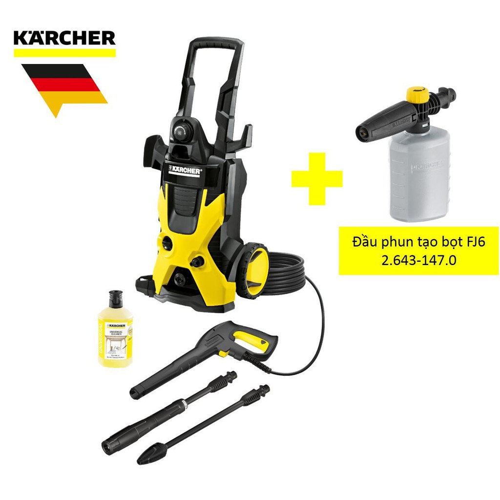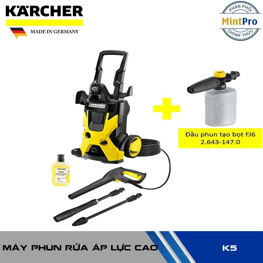Combo máy phun rửa áp lực cao Karcher, K 5 và đầu phun tạo bọt FJ6