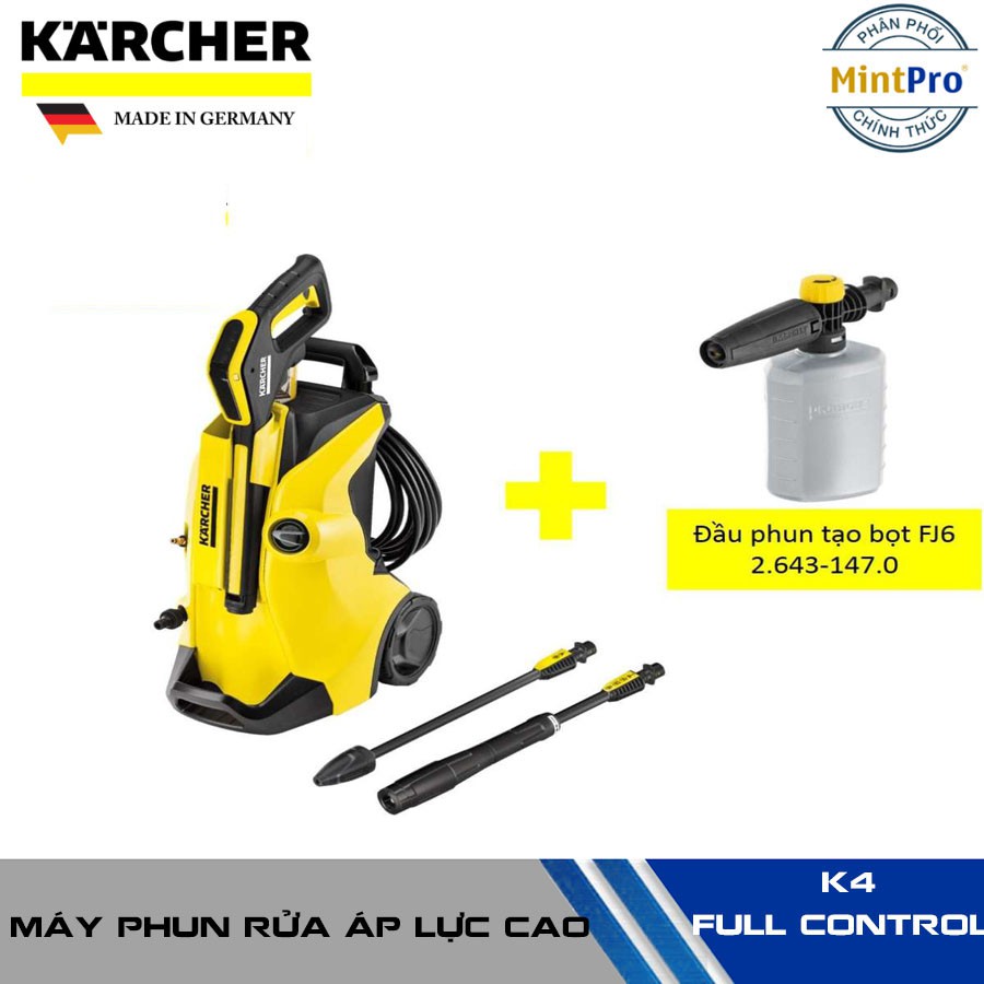Combo máy phun rửa áp lực cao Karcher, K 4 Full Control và Đầu phun tạo bọt FJ6