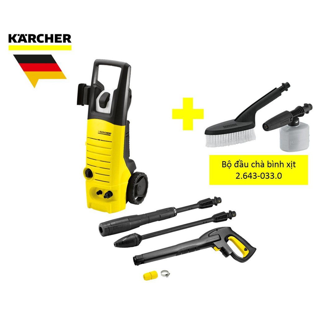 Combo máy phun rửa áp lực cao Karcher K3.450 và bộ đầu chà bình xịt