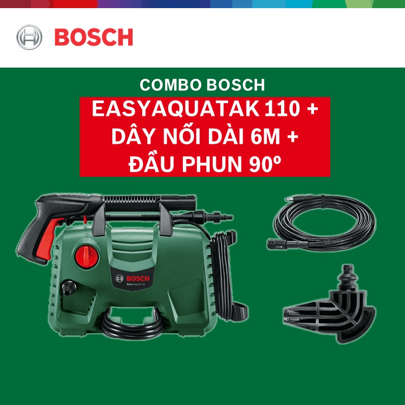 Combo Máy phun xịt rửa áp lực cao Bosch Easy Aquatak 110 + Dây nối dài 6m + Đầu phun 90 độ