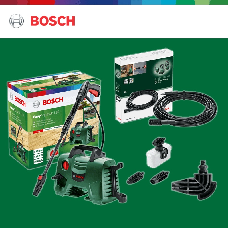 Nhà cửa & Đời sống > Dụng cụ & Thiết bị tiện ích > Dụng cụ > Máy rửa áp lực nước || Combo Máy phun xịt rửa áp lực cao Bosch Easy Aquatak 110 + Dây nối dài 6m + Đầu phun 90 độCòn hàng