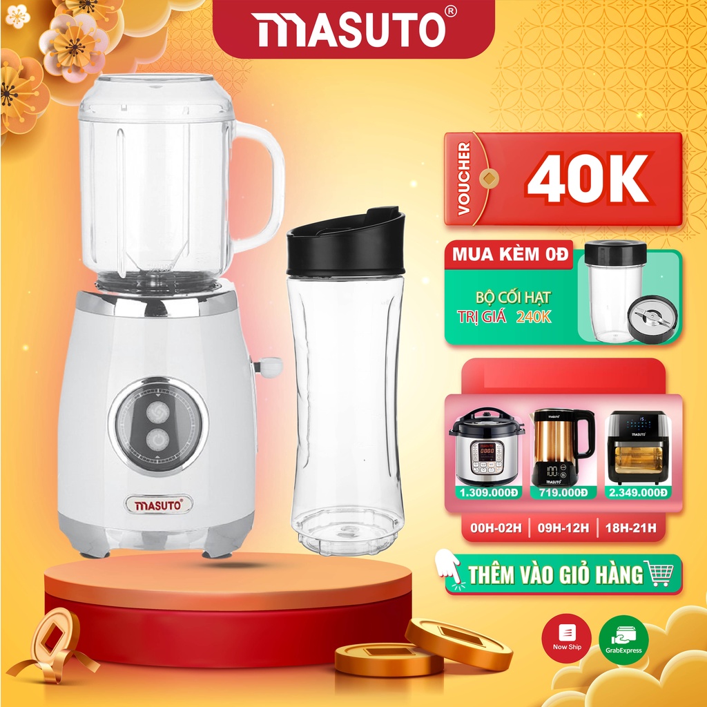 Combo Máy xay sinh tố đa năng Masuto Blender chính hãng 2 cối 0,6L xay hoa quả rau củ siêu nhuyễn mịn 10s