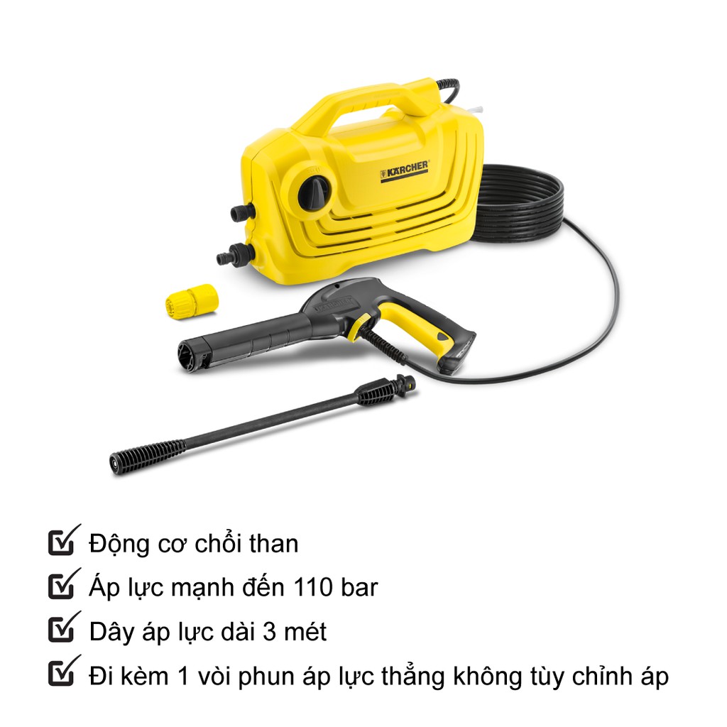 Nhà cửa & Đời sống > Dụng cụ & Thiết bị tiện ích > Dụng cụ > Máy rửa áp lực nước || [Mã LIFEMALL253 giảm 100K đơn 250K] Combo Máy xịt rửa xe Karcher K2 Classic và dây cấp nước 1.5 mCòn hàng