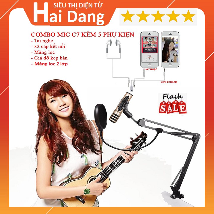 Bộ sản phẩm phụ kiện thu âm - livestream không thể thiếu cho bạn, mua combo giá bất ngờ* Micro C7 Chuyên Hát Livestream