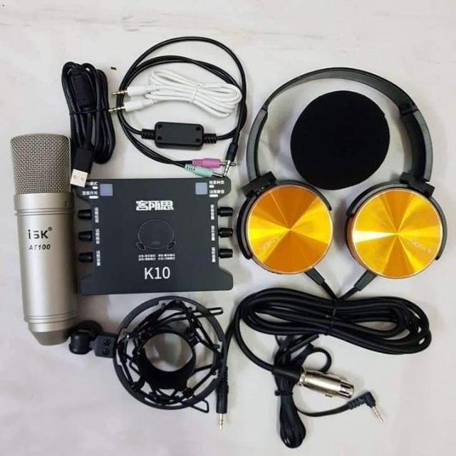 Thiết Bị Âm Thanh > Micro thu âm || Combo mic ISK AT-100 + sound card k10 + tai nghe Sony XB450ApCòn hàng