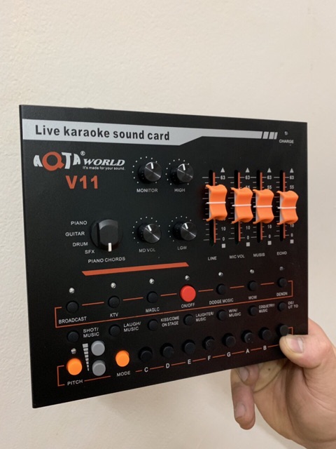 - Pin nguồn lưu trữ điện trong sound card, pin lithium: 1000 mAh ( có thể sử dụng liên tục trong 5h mất điện)