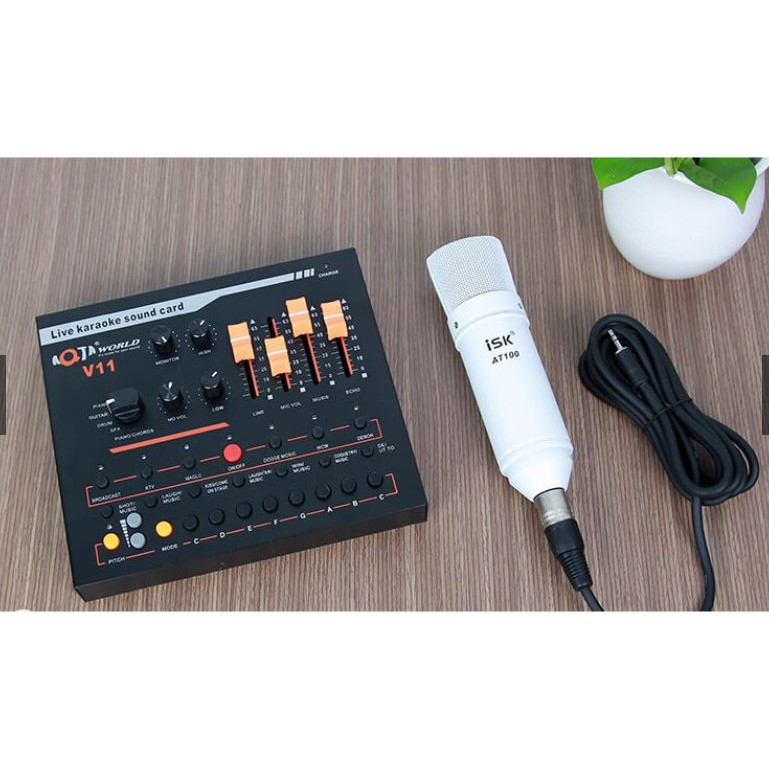 Thiết Bị Âm Thanh > Micro thu âm || Combo mic livestream AT-100, soundcard V11 Full bộ LivestreamCòn hàng
