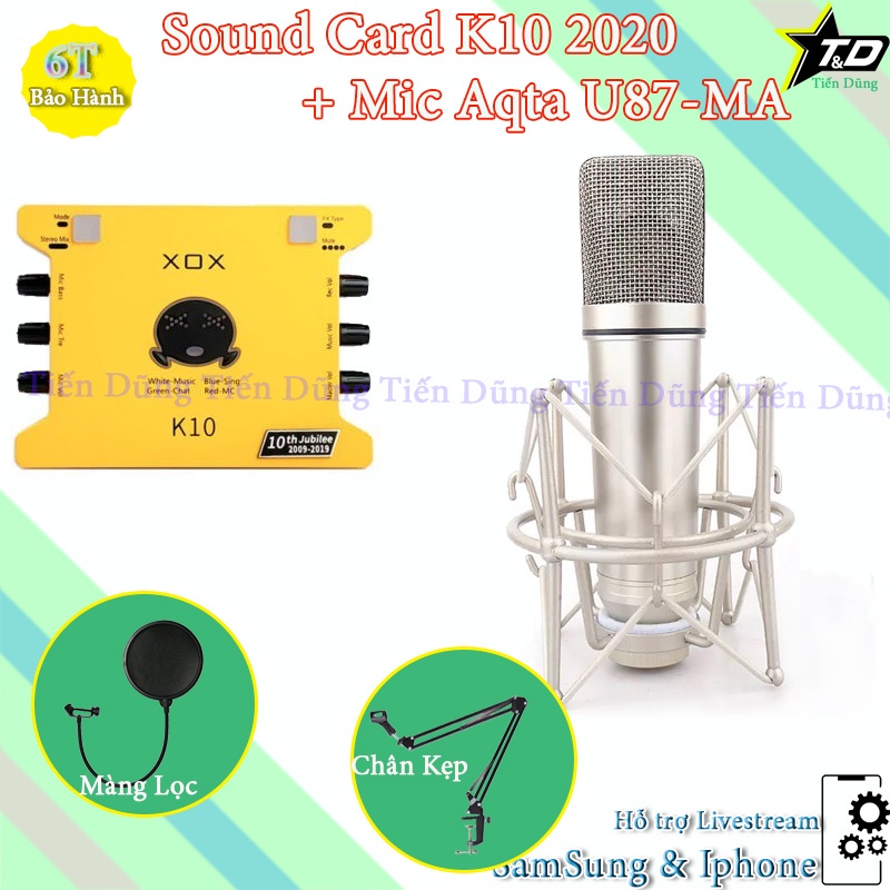 Combo mic livestream karaoke U87 MA và sound card K10 2020 đi kèm chân kẹp màng lọc.🍀 TRỌN BỘ SẢN PHẨM MIC THU ÂM :
