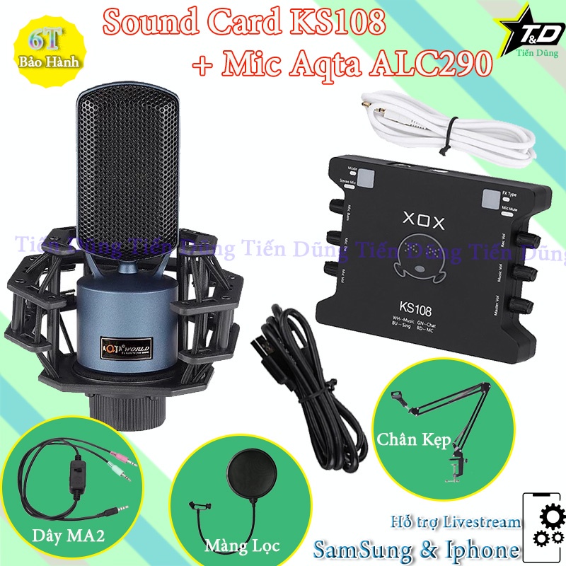 Thiết Bị Âm Thanh > Micro thu âm || Combo mic livestream karaoke Aqta ALC290 và sound card XOX KS108 bản tiếng anh đi kèm chân kẹp màng lọc dây MA2Còn hàng