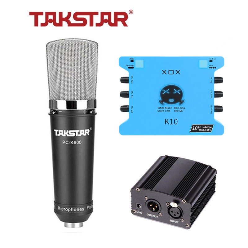 Bộ Mic Livestream Hát Karaoke Chính Hãng Đầy Đủ Mic Takstar PC-K600, Sound Card XOX K10, Nguồn 48V & Phụ Kiện