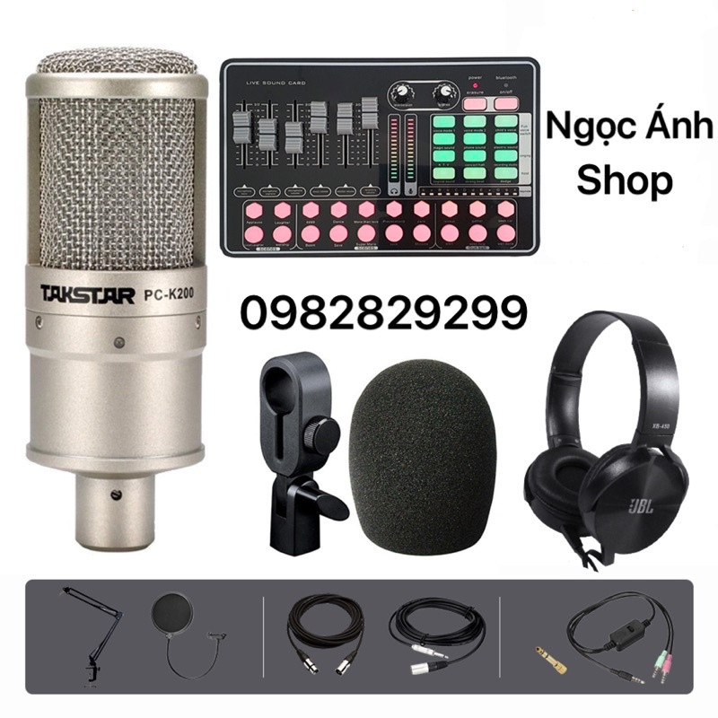 Combo Mic Takstar K200 Soundcard H9 chân màng dây livestream ma2 nguồn 48 2 dây canon – Thu âm hát live stream,1. TRỌN BỘ LIVESTREAM Takstar PC K200 -Sound Card H9 gồm có: