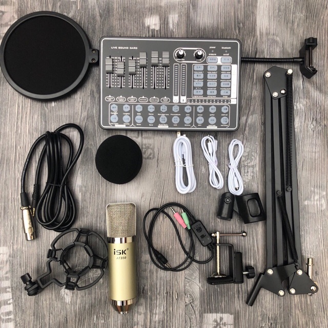 - Bộ mic thu âm Sound card H9 Bluetooth + Micro thu âm ISK AT350 là một combo thu âm ,live tream mini tại nhà dành cho tín đồ đam mê ca hát.Sound card H9 Bluetooth mà đi kèm với Micro ISK AT350 cho âm thanh chất lượng cãi tiến . Micro ISK AT350 được dùng bán chuyên ,có thể thu âm hát live tream.