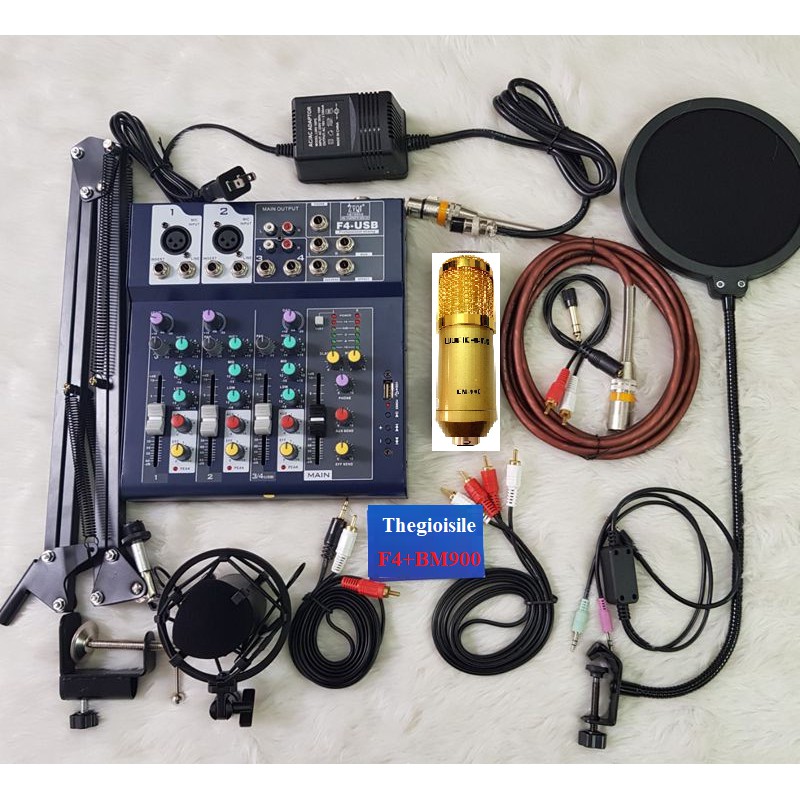 Thiết Bị Âm Thanh > Amply và đầu chỉnh âm || [Mã 44ELSALE2 giảm 7% đơn 300K] Combo Mic thu âm BM900 + Soundcard Mixer F4 FULL phụ kiệnCòn hàng
