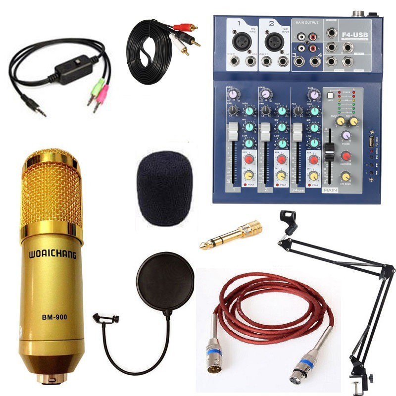 Giới thiệu [Mã ELHACE giảm 4% đơn 300K] Combo Mic thu âm BM900 + Soundcard Mixer F4 FULL phụ kiện