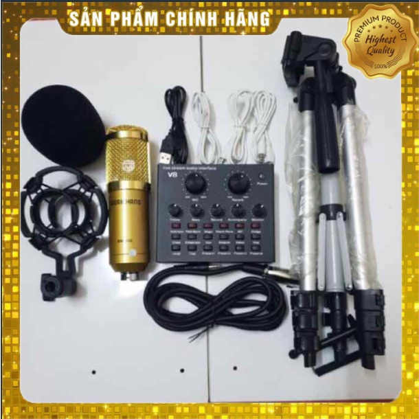 Thiết Bị Âm Thanh > Micro thu âm || [Mã 253ELSALE hoàn 7% đơn 300K] COMBO MIC THU ÂM BM900-SOUND CARD V8 Blt kèm gậy trippod 3110Còn hàng