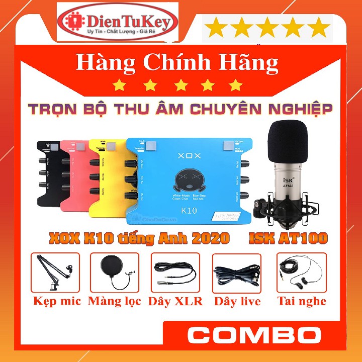 Bộ Combo Mic Thu Âm Hát Livestream Soundcard XOX K10 2020 & Mic ISK AT100 thu âm chuyên nghiệp giá rẻ