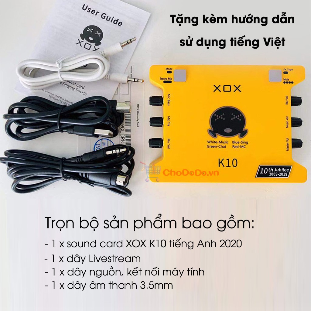 ✔️ Mặc dù nâng cấp hoàn toàn về phần cứng và trang bị đầy đủ phụ kiện kèm theo nhưng giá của XOX K10 2020 tiếng Anh chỉ cao hơn K10 tiếng Trung cũ 1 ít, xứng đáng là sound card đáng mua nhất trong tầm giá 1tr trở xuống và có chất lượng không hề thua kém gì so với các dòng sound card cao cấp.