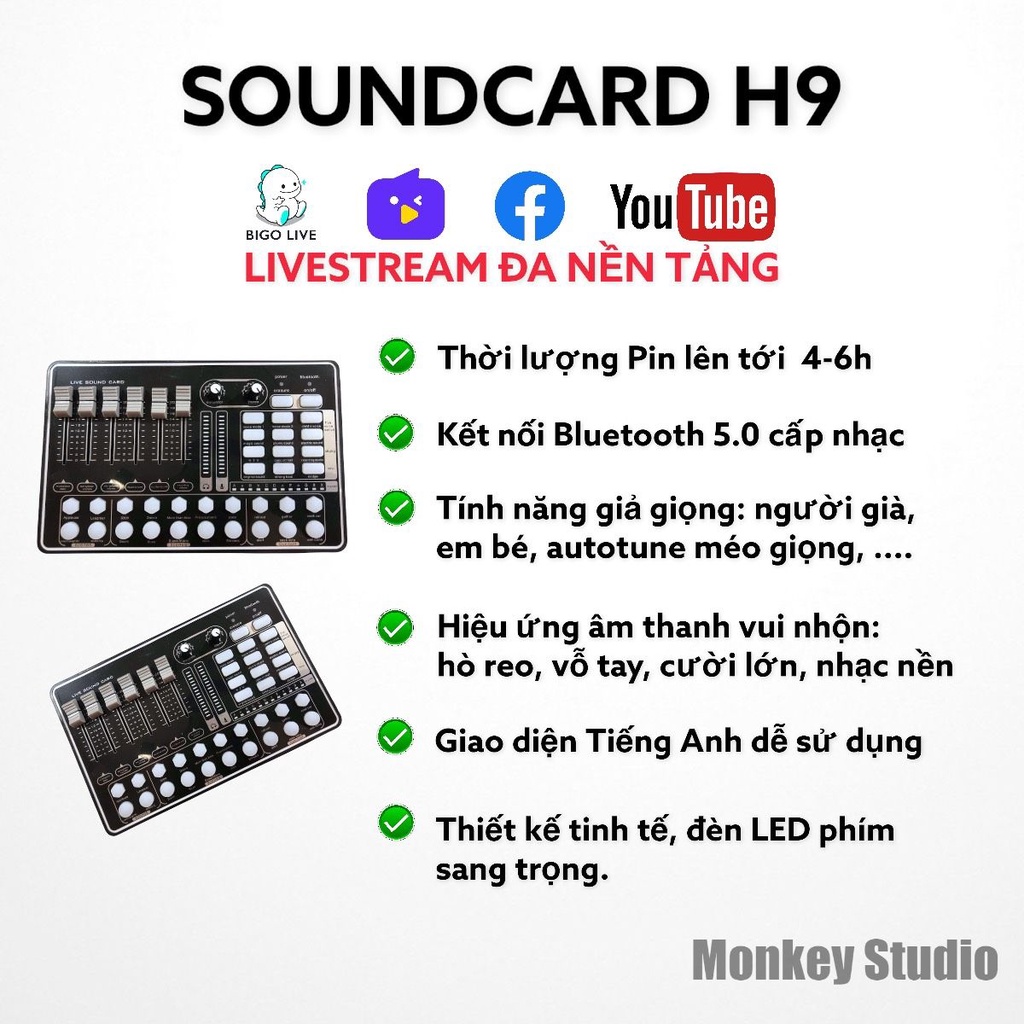 Tuy nhiên, trên thị trường có khá nhiều mẫu mic thu âm hát livestream và sound card để chỉnh âm nhưng không phải loại nào cũng tốt. Vì vậy, Monkey Studio sẽ giới thiệu đến bạn bộ combo mic thu âm hát livestream chuyên nghiệp SOUNDCARD H9 BLUETOOTH VÀ MIC ZANSONG BM3000