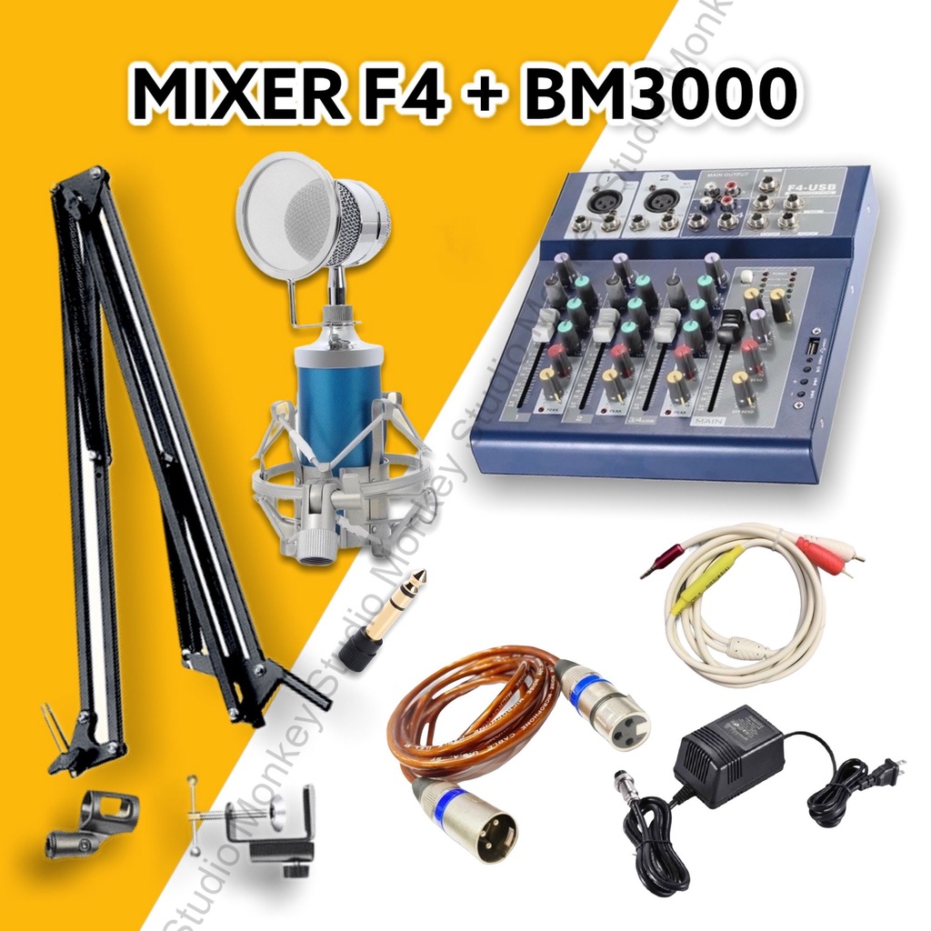 Tuy nhiên, trên thị trường có khá nhiều mẫu mic thu âm hát livestream và sound card để chỉnh âm nhưng không phải loại nào cũng tốt. Vì vậy, Monkey Studio sẽ giới thiệu đến bạn bộ combo mic thu âm hát livestream chuyên nghiệp MIXER F4 BLUETOOTH VÀ MIC ZANSONG BM3000