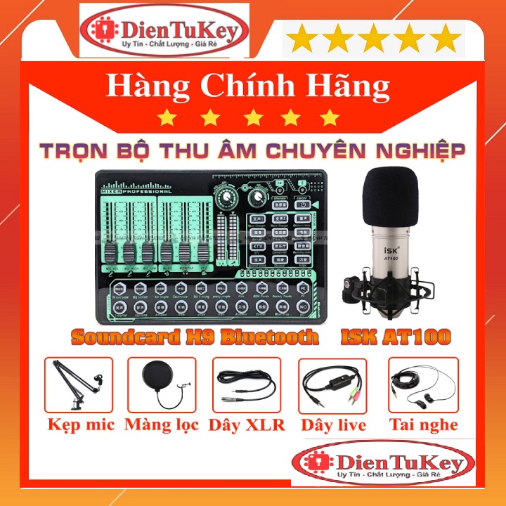 Combo Mic Hát Livestream Soundcard H9 và ISK AT100 loại 1 Full phụ kiện trọn bộ sound card và mic thu âm chính hãng---------------------------------------