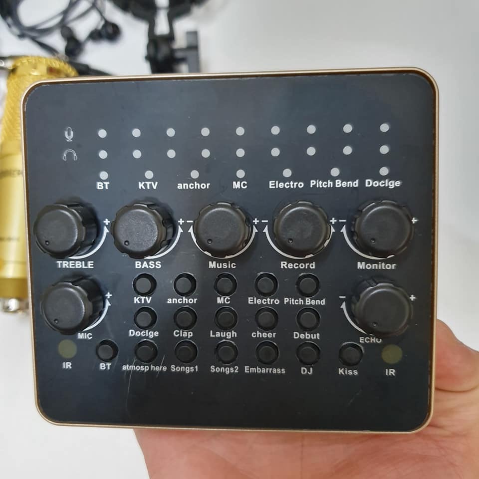 Sound card thu âm V10 là sản phẩm card âm thanh tương thích với nhiều thiết bị như smartphone, laptop, pc, máy tính bảng. Với tính năng làm méo giọng hát, thành giọng trẻ em, người già, Khả năng chèn các hiệu ứng âm thanh vào các đoạn thu như tiếng vỗ tay, tiếng hò reo, nhạc cổ vũ, tiếng chim kêu... với 12 hiệu ứng âm thanh, sẽ đem lại cho bạn trải nghiệm thu âm vô cùng thú vị.
