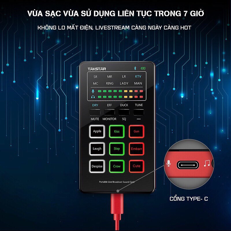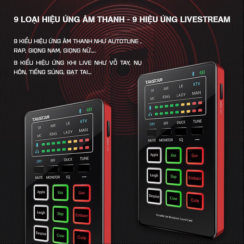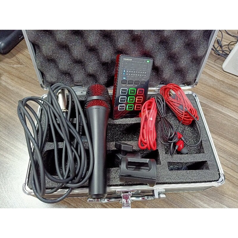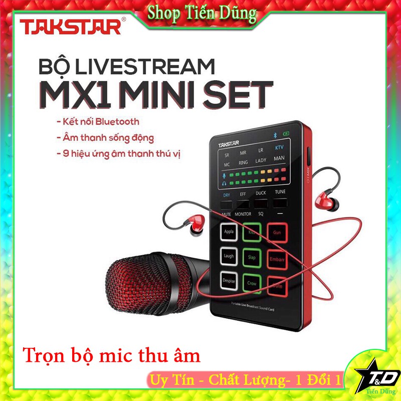 Combo mic thu âm Takstar MX1 mini đầy đủ mic livestream sound card có auto-tone tích hợp pin giá dây livestream tai nghe