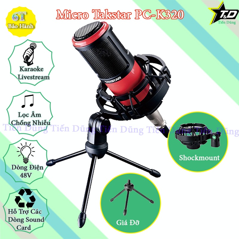 - Takstar PC-K320 thuộc dòng micro Condenser chuyên nghiệp, điện dung hiệu suất cao cho âm thanh chất lượng tốt hơn, độ nhạy của micro cao hơn và phạm vi thu cũng rộng hơn. Takstar K320 áp dụng cho đài phát thanh và truyền hình, thu âm cá nhân, bản thu âm nhạc và hát online hay streaming.