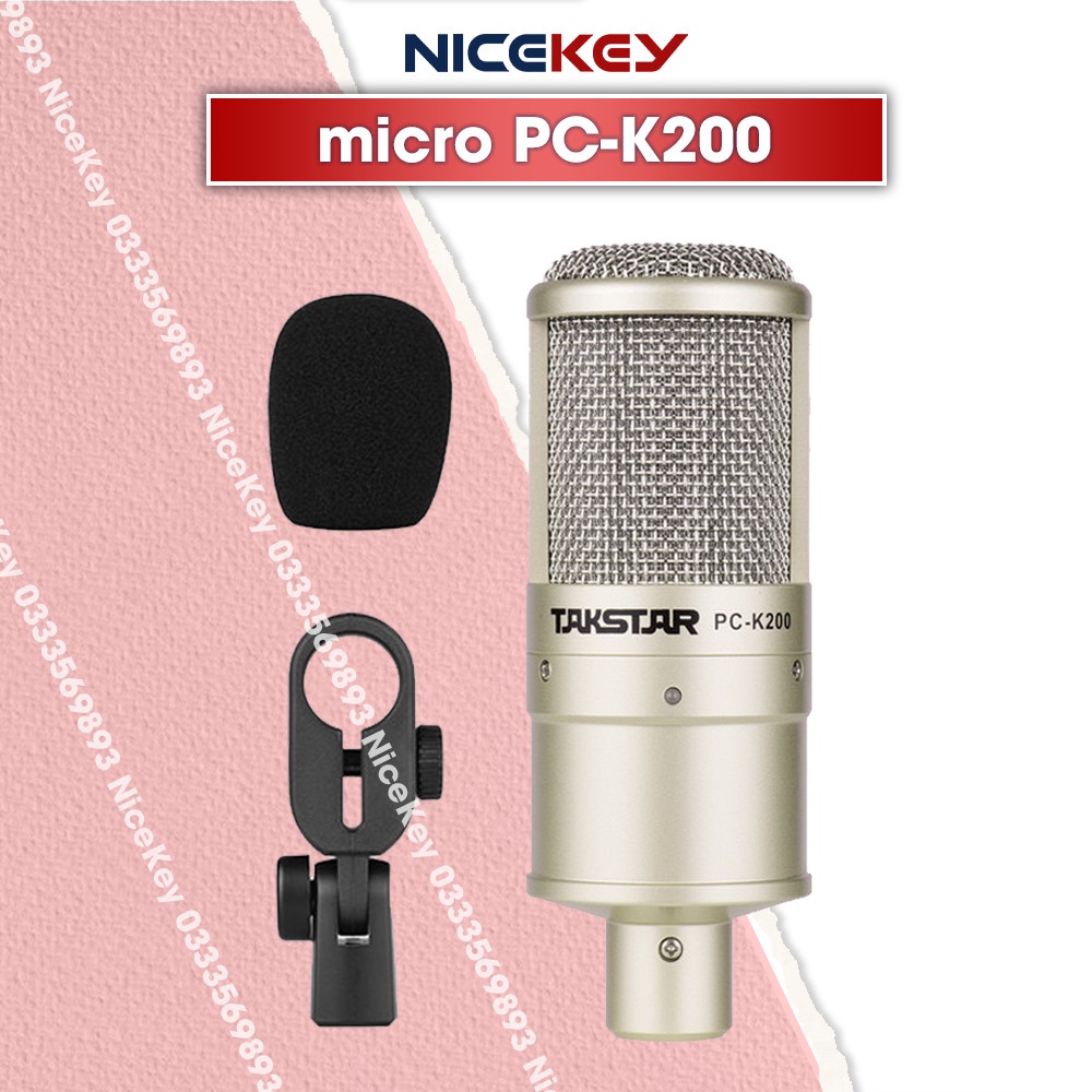 - Micro thu âm takstar PC-K200: Là sản phẩm micro sử dụng công nghệ cấu tạo condenser (tụ điện) là công nghệ sản xuất micro của các hãng mic thu âm chuyên nghiệp sử dụng.