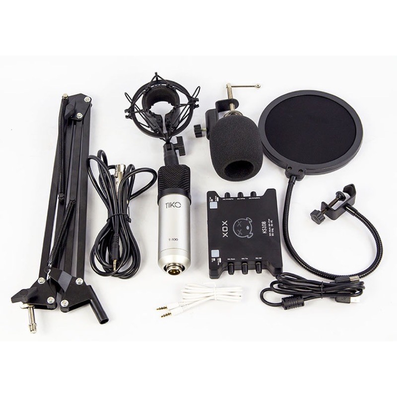 COMBO MIC THU ÂM TIKO T-100 + SOUND CARD XOX KS108 + CHÂN KẸP MÀNG LỌC ĐẦY ĐỦ BẢO HÀNH 1 năm