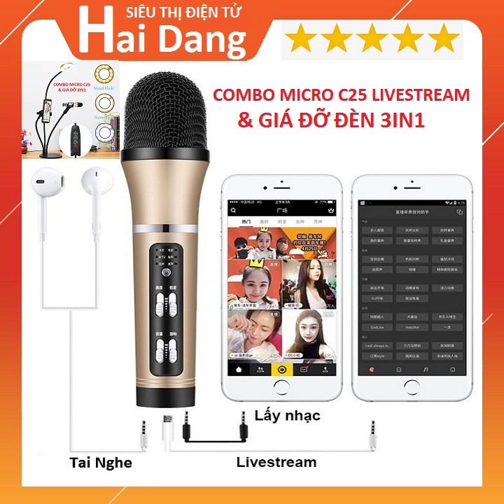 Combo Micro C25, Giá Đỡ Đèn 3in1, Tặng Tai Nghe, Micro C25 Livestream Hát Karaoke 6 Chế Độ Âm Thanh Giả Giọng Bản Nâng Cấp Cực Hay New 2020SHOPHAIDANG XIN KÍNH CHÀO QUÝ KHÁCH