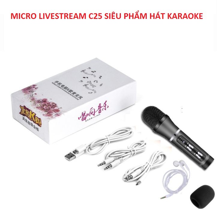 Combo Micro C25, Giá Đỡ Đèn 3in1, Tặng Tai Nghe - Mic C25 Livestream Hát Karaoke Giả Giọng Cực Hay