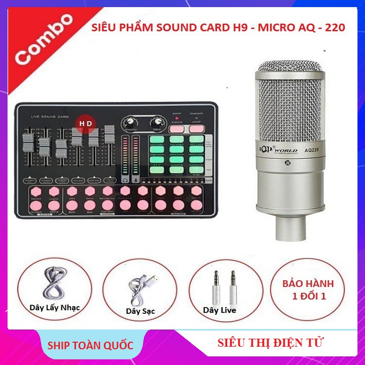 - Shop Có bán Combo Cả Bộ sản phẩm, Gồm Sound Card H9 + Micro AQ-220 + đầy đủ dây cắm