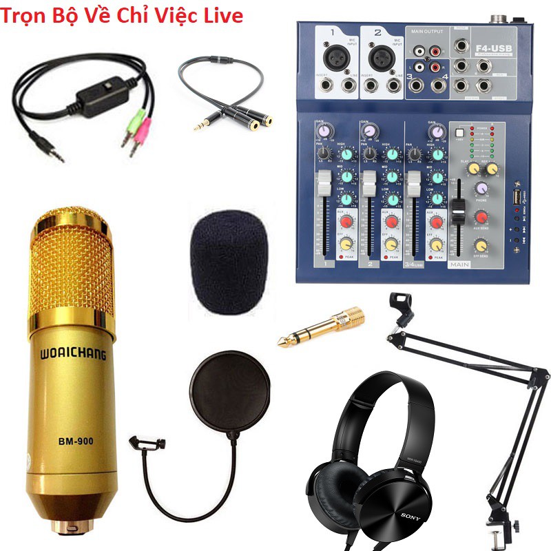 Trọn bộ Mixer F4 -Yamaha + Micro BM 900 (Hoa Vinh) hát liver stream, hát karaoke gia đình gồm: