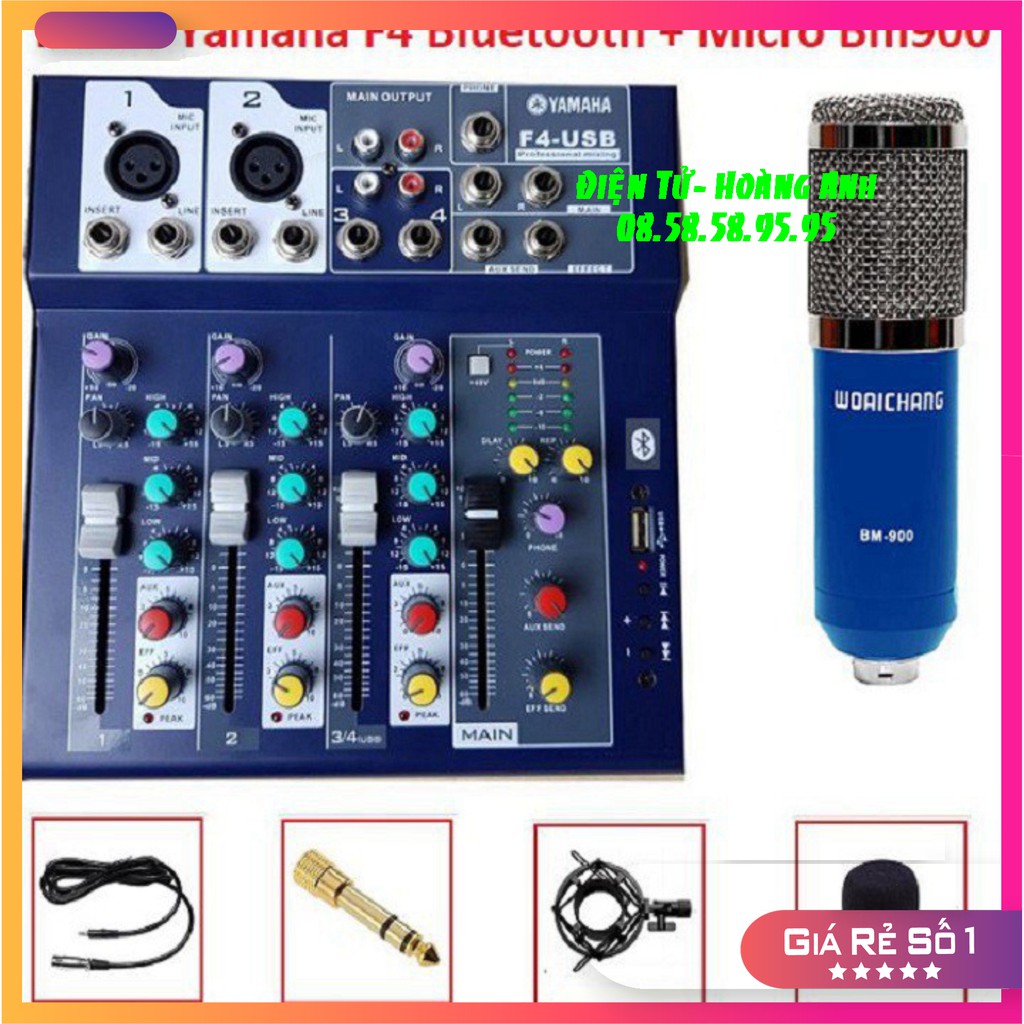 Trọn bộ Mixer F4 -Yamaha + Micro BM 900 (Hoa Vinh) hát liver stream, hát karaoke gia đình gồm: