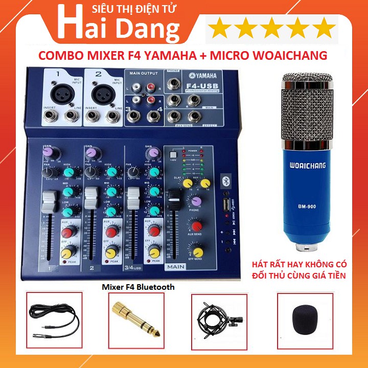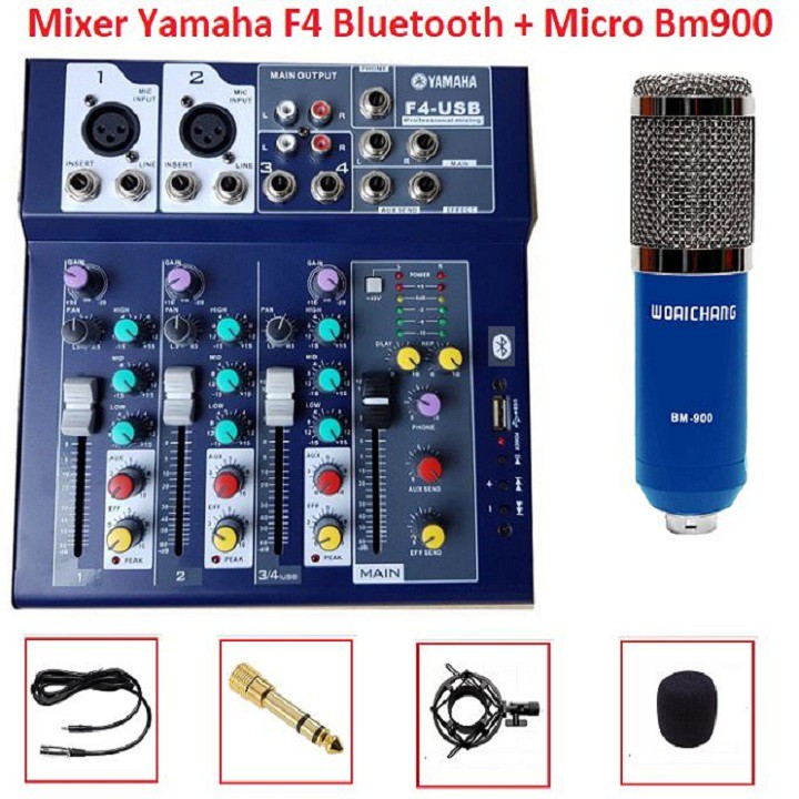 [Mã ELHACE giảm 4% đơn 300K] Combo Mixer Yamaha F4 Bluetooth, Và Micro Thu Âm Bm-900 hát Karaoke Online Tiếng Cực Hay